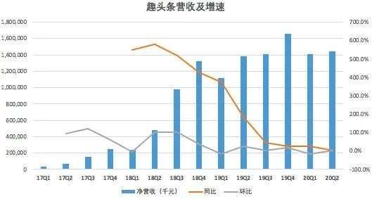 财报显示,趣头条二季广告和市场收入13.78亿元,较去年同期的13.58亿元,仅增长1.5%,贡献了95.6%的营收。