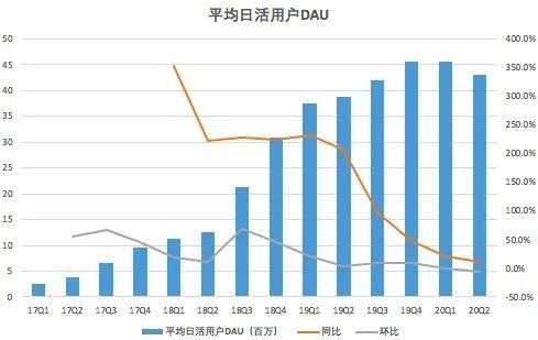 再看趣头条的平均日活用户(DAU),根据财报披露,趣头条二季度平均日活跃用户为4300万,高于去年同期的3870万,低于今年第一季度的4560万,报告期内,趣头条的平均日活用户较少了260万。
