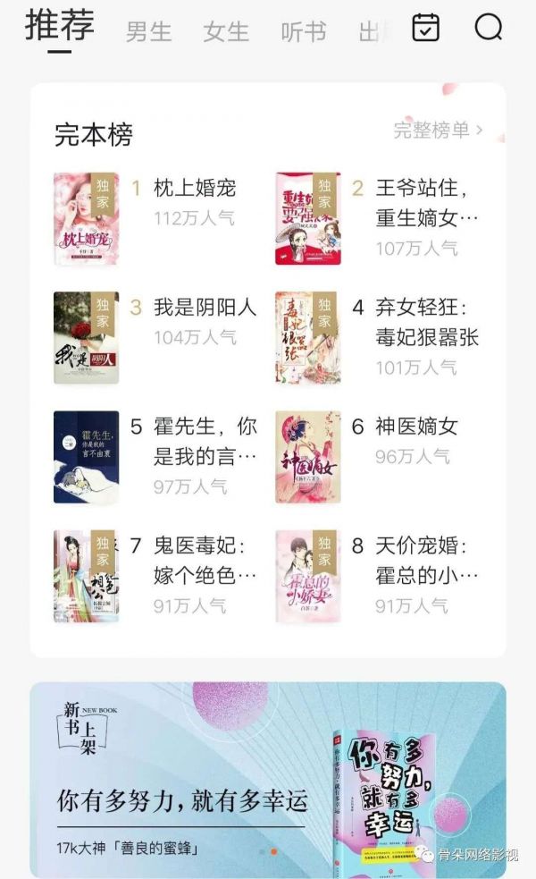 秀闻科技背后则有磨铁撑腰,《少年的你》《从你的全世界路过》《明朝那些事儿》《诛仙》系列都是它的作品,旗下的逸云书院更专注于女性精品阅读。一系列可以影视化的热门IP,与当下市场正热的题材均位列其中。