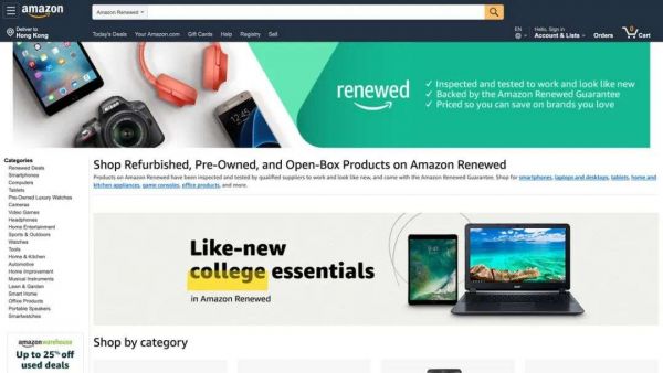 2017年,电商巨头亚马逊设立转售翻新产品的频道 Amazon Renewed, 允许满足条件的第三方卖家加入。相关条件包括过去1个半月的翻新产品发票和价格证明、低于0.8%的订单不良率、所有翻新产品提供至少90天的保修期等等。