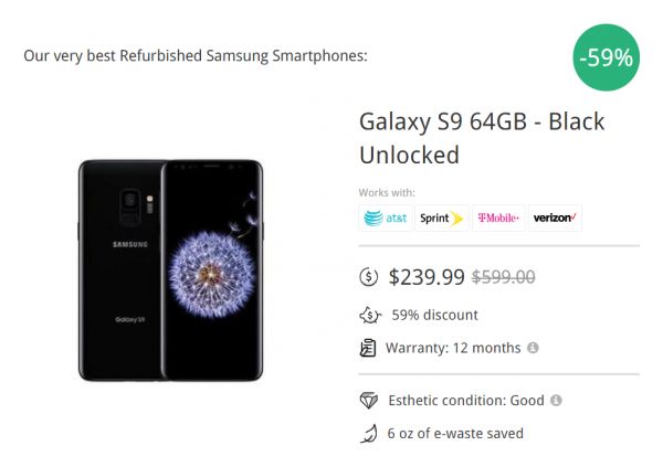 Back Market上在售的6折Galaxy S9
