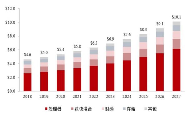 从数据上直观感受,根据IBS统计,芯片IP市场将从2018年的46亿美元增长至2027年的101亿美元,其中处理器IP市场仍为最大单一市场,预计在2027年达到63亿美元;但其他细分市场也不容小觑,预计到2027年,数模混合IP市场预计达到13亿美元,射频IP市场预达到11亿美元。