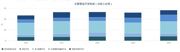 在该公司公布的2020年半年报中,华韩整形本期毛利率50.82%,销售费用占营收比重18.24%,管理费用占营收13.89%,净利润13.91%。上年同期更是明显,销售费用占营收比重22.30%,管理费用占营收17.51%,毛利率50.64%的情况下净利润只有8.03%。