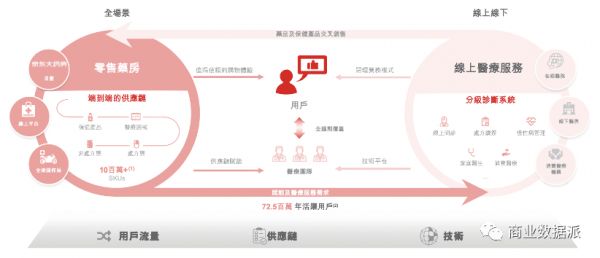 通过零售药房业务和在线医疗健康服务,可以实现“医、药联动”,打造一个闭环体系,零售药房的买家也是潜在的高质量的医疗健康服务用户,而医疗健康服务用户也可以反哺零售药房和其他消费医疗健康服务的重要流量。
