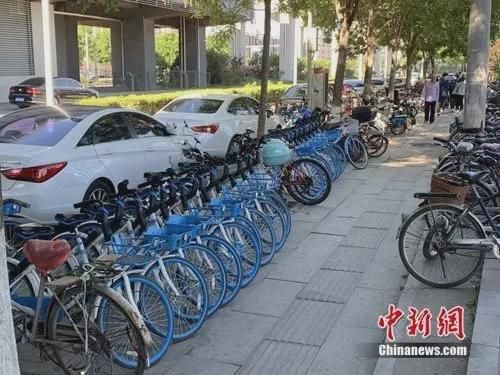 北京某郊区地铁口的共享单车。中新网 吴涛 摄