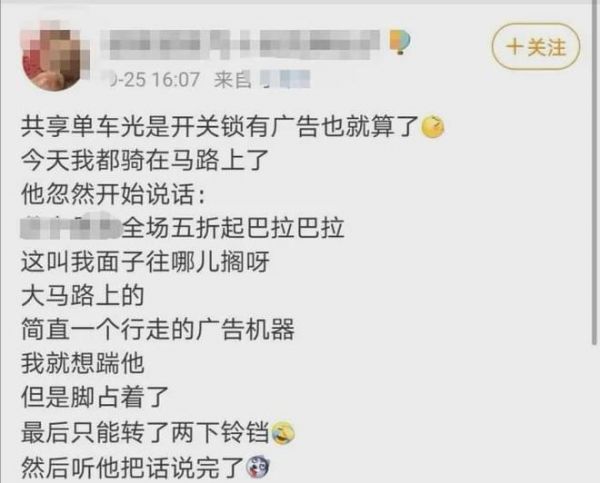 “下一步会不会是共享单车循环语音播报广告一直到你下车”“畅想一下若所有共享单车都成为奔跑的语音广告牌…… ”