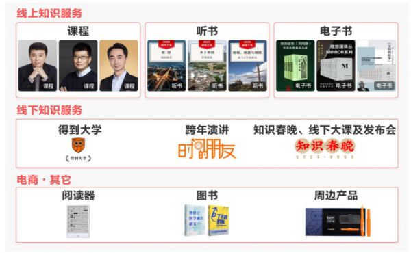 招股书显示,这家以售卖知识为主的公司,主营业务分为线上和线下板块,线上以在线课程、听书、电子书为主,线下则以得到大学、跨年演讲、知识春晚、线下大课发布会为主。此外,思维造物还布局了电商、电子阅读器等业务,在天猫也开出了罗辑思维旗舰店。