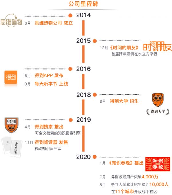 两年后,罗振宇又推出了“得到App”,将这门生意推上新的台阶。近几年,罗振宇和得到App、名师课程频频出现在公众的视野。