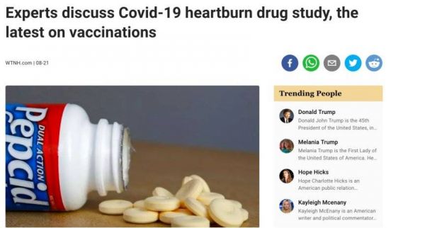 9月2日,哈特福德医疗保健中心的一份研究也表明,在该医疗中心的900名住院患者中,83人使用过法莫替丁。调查表明,服用过法莫替丁的患者,在医院死亡的可能性降低了45%,需要使用呼吸机的可能性也降低了48%。同时,使用法莫替丁的患者中,一些血液检测指标也降低了,而这些指标与新冠预后不佳有关。