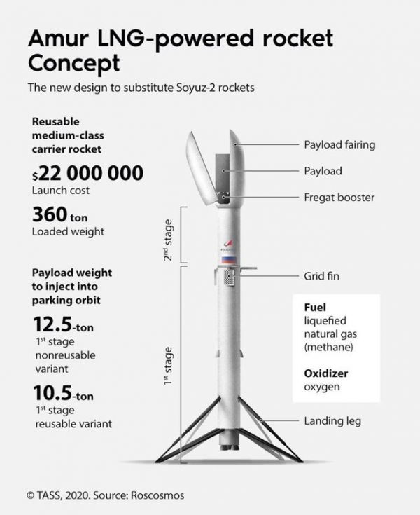 在最新设计中,阿穆尔火箭的助推器将由燃烧甲烷的新型(尚未开发)火箭发动机提供动力。此外,俄罗斯首次寻求建造可重复使用的火箭第一级。Roscosmos的目标是将阿穆尔火箭发射成本降至2200万美元,但能够向近地轨道运送10.5吨有效载荷。