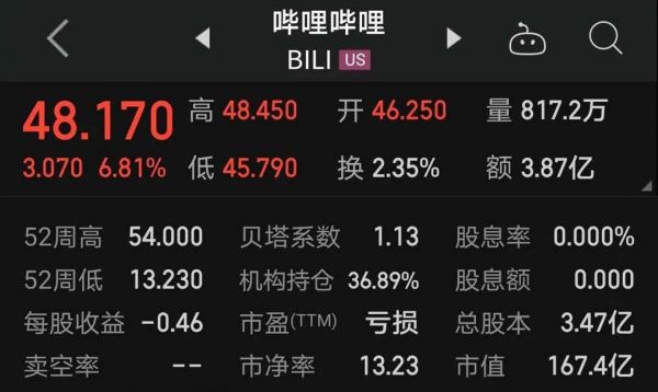 B站,市值一夜暴涨34亿