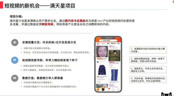 “满天星计划”是阿里面向商家推出的短视频项目,通过新内容冷启动激励,为商家(与KOL)产出的短视频内容提供更多流量,并通过数据反馈赋能商家,帮助商家围绕消费群体做内容生产。