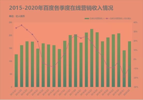 百度方面,今年第二季度公司整体线上广告收入为177亿元,尽管叫第一季度疫情影响下的19%下滑幅度有所好转,但较上一年业绩的下滑依旧达到了8%。