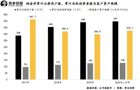 资产管理端同样如此,平台累计注册用户数由2017年的3,380万人增长至2020年上半年的4,470万人,其中活跃投资者增长至1,280万人。客户资产总规模在2017年至2019年呈下降趋势,但2020年上半年有小幅增长,达到3,747亿元。