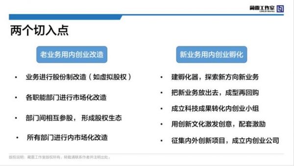 讲了这么多,我们会发现,内创业不只是激发活力这么简单,对企业来说,有的是激发活力,有的是留住人才,还有的是实现转型。