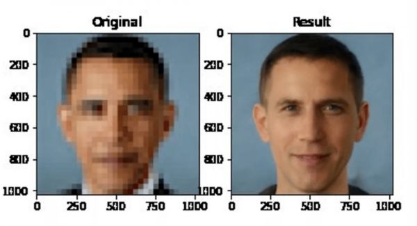 只需几秒钟,PULSE算法便可将一张16×16像素的低分辨率图像提升到1024×1024级别,效果确实很好。只不过还原后的图像与原图误差很大,比如下面这张打了马赛克的奥巴马,使用PULSE算法后却变成了一个白人。