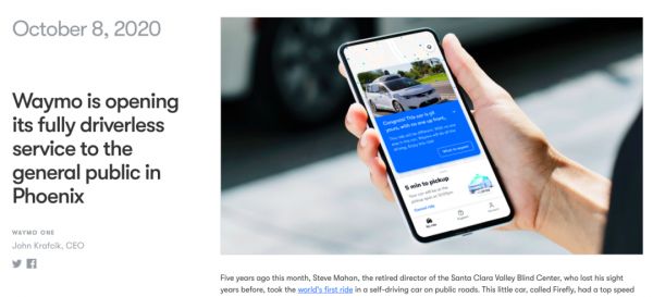 再创历史:谷歌Waymo拿掉人类司机,无人出租服务向公众开放