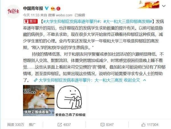 根据《中国青年报》报道,大学生抑郁症发病率正在逐年攀升。