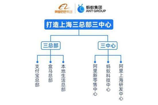 @新浪科技【与上海战略合作,阿里巴巴、蚂蚁金服三总部三中心正式落“沪”】阿里巴巴集团、蚂蚁集团与上海市政府签署战略合作协议,这也是上海与阿里巴巴继2015、2018年后的第三度战略合作。根据协议,阿里巴巴集团、蚂蚁集团的三个总部和三个中心正式落户上海。 根据合作,阿里巴巴集团与蚂蚁金服集团的“三总部三中心”落户上海。三总部是支付宝总部、盒马总部、本地生活总部,三中心是阿里上海研发中心、阿里新零售中心、蚂蚁科技中心。