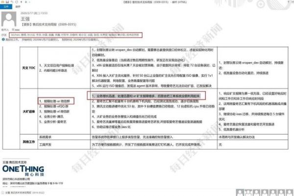 售后技术服务周报(可以看到该周报同步给了技术运营部整个部门,在2020年3月,该部门有50多人)。图片来源:陈磊供图