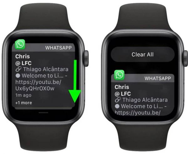 和 iOS 类似,watchOS 7 上也将 Force Touch 交互进行了系统级取消。举例来说,原先的通知栏中用户可以通过重压的方式在通知栏任意位置呼出一键清除按钮,在升级到 watchOS 7 上这个按钮被移到了通知栏最上方,并成为一个固定不会隐藏的按钮(如上图)。