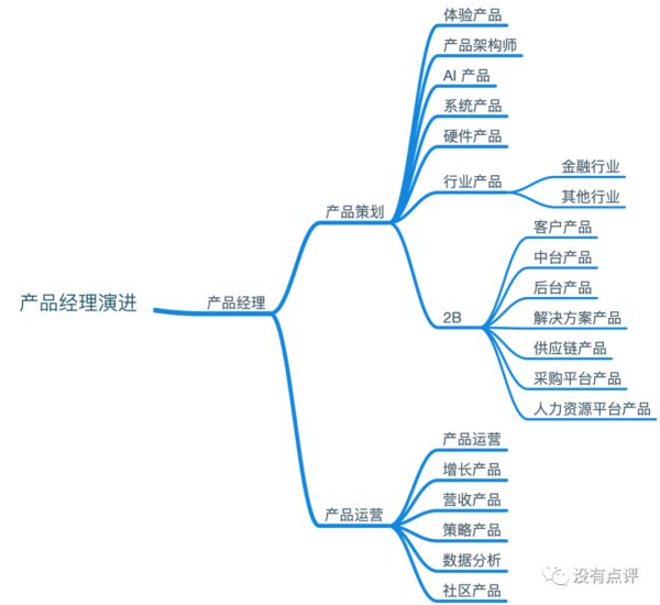 最传统的产品经理专注于体验,和交互设计师工作高度重合,价值越发不能体现。由于当前的产品功能愈来愈复杂,为了提高模块的复用和效率,对标软件架构师岗位,产生了产品架构师一职。人工智能和 IoT 的火热,衍生出对人工智能、软件系统和硬件的产品经理需求。随着支付和本地生活的兴起,服务于垂直领域而又靠近 BD (Business Development)职能的行业产品出现,其中金融行业由于具有很高的行业壁垒所以单独作为一个大类出现。B 端业务需要满足不同行业的需要,除了基础的接近 FAE 的客户产品及解决方案产品、提升业务效率类似产品架构师的中台产品和以云服务为重点的后台产品外,针对供应链、采购平台、人力资源等环节也有特定的人才需求。