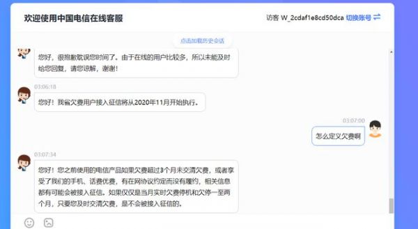 不过,从目前全国情况来看,中国电信各省分公司对于用户欠费的处理并不一致。上海电信客服对记者表示,欠费只要付清了就可以了,如果长期不付的话,会变为欠费灰名单用户,并未表示欠费要上征信。