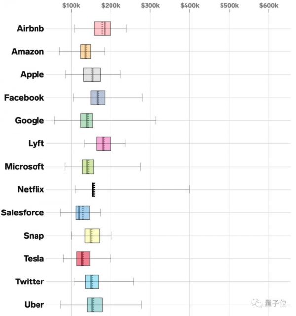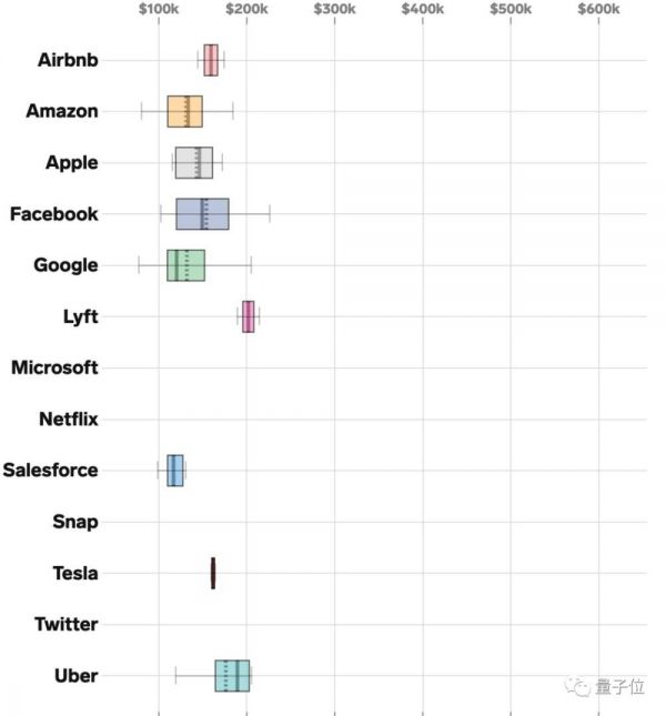 而从公开的薪酬资料来看,与上市的那几家大型公司相比,如苹果、亚马逊、Facebook、谷歌之类相比,情况又是如何呢?