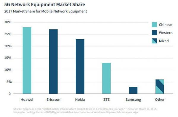 在核心电信网络设备制造商的竞争中,美国的公司已经不在其中。四家主导市场的,满足5G技术核心网络技术制造商没有一家来自美国。未来核心网络设备商的选择将会在欧洲的安全合作伙伴(爱立信、诺基亚)和中国(华为、中兴)之中。