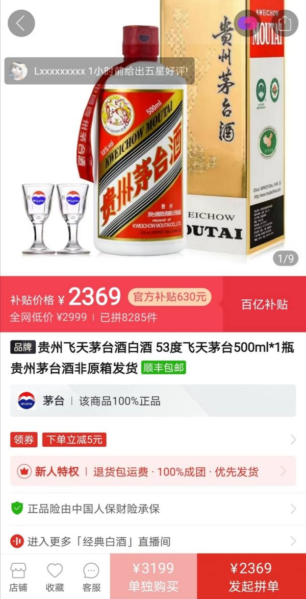 拼多多低市价1000元卖茅台,茅台称没供货