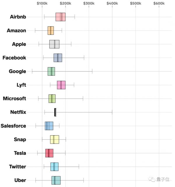 而从公开的薪酬资料来看,与上市的那几家大型公司相比,如苹果、亚马逊、Facebook、谷歌之类相比,情况又是如何呢?
