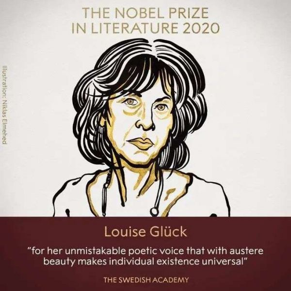 诺贝尔文学奖则是美国的女诗人路易丝·格吕克(Louise Glück)获奖,获奖理由是“因为她那无可辩驳的诗意般的声音,用朴素的美使个人的存在变得普遍”。