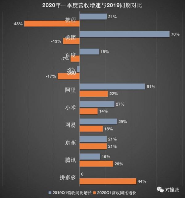阿里受疫情影响较为严重——2020年Q1增速比2019年同期明显放缓。