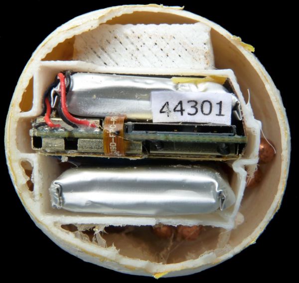 装有GPS的3D打印海龟蛋横截面