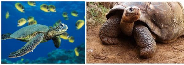 绿海龟(左);榄蠵龟(右)