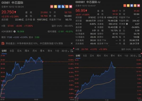 截至发稿,中芯国际A股和港股涨幅均一度接近14%,半导体设备供应商中微公司、北方华创、安集科技等涨幅也超过5%。