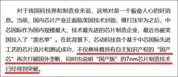 在一篇题为《“国产芯”突围刻不容缓》的报道中,《珠海特区报》写道:“芯动科技首个基于中芯国际先进工艺的芯片流片和测试成功,不仅意味着具有自主知识产权的‘国产芯’再次打破国外垄断,同时也说明‘国产版’的7nm芯片制造技术已经得到突破。”