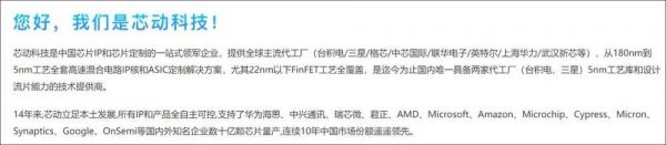 官网介绍:“芯动科技是中国芯片IP和芯片定制的一站式领军企业,提供全球主流代工厂(台积电/三星/格芯/中芯国际/联华电子/英特尔/上海华力/武汉新芯等),从180nm到5nm工艺全套高速混合电路IP核和ASIC定制解决方案,尤其22nm以下FinFET工艺全覆盖,是迄今为止国内唯一具备两家代工厂(台积电、三星)5nm工艺库和设计流片能力的技术提供商。”