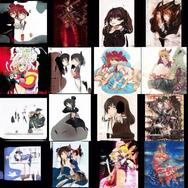 由于Danbooru2018数据集中作品的画风并不一致,人工智能这回生成的图像好像有一点诡异的艺术感…