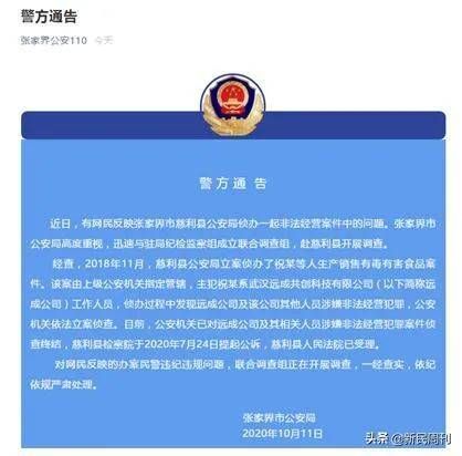 10月11日12时许,张家界市公安局发布通告称,对网民反映的办案民警违纪违规问题,联合调查组正在开展调查,一经查实,将依纪依规严肃处理。