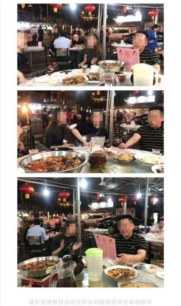 远成集团除了控告慈利公安以“交钱就撤案”敛财外,还贴出了“刘鹏赴武汉调查期间接受异性有偿陪侍”的图片。图片中,在一处类似街头大排档的餐馆,刘鹏端坐中央,左右两边各有一名美女作陪。负责招待的人正是罗小平。