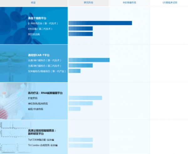 截至目前,博雅辑因具有以基因编辑技术为中心的四个平台:针对造血干细胞和T细胞的体外细胞基因编辑治疗平台,基于RNA单碱基编辑技术的体内基因编辑治疗平台,以及从事靶向药物研发的高通量基因组编辑筛选平台。