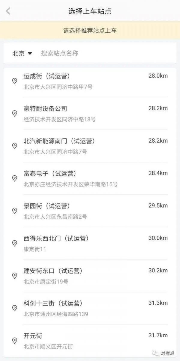 事实上,百度此次开放的自动驾驶出租车,不能随叫随停,只能在固定的站点上下车。运行模式更接近公共汽车。此次共开放了海淀、亦庄共15个站点。其中,海淀区有3个站点,都在稻香湖附近。不过好在还有一趟地铁可以抵达。
