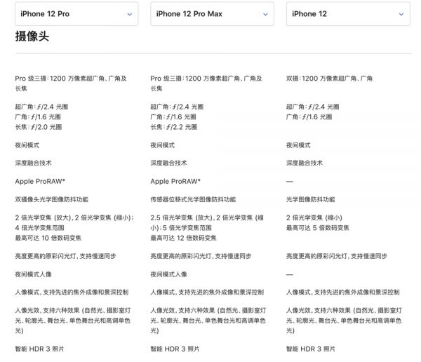 另外需要注意的是,iPhone 12 Pro 和 12 Pro Max 在影像相关配置方面的差异是很大的,换句话说,这次 iPhone 12 Pro Max 才是“真旗舰”,12 Pro 的定位都要稍微低一些。比如 Pro Max 的长焦焦距更长,主摄的传感器面积更大,号称有 87% 进光量提升。