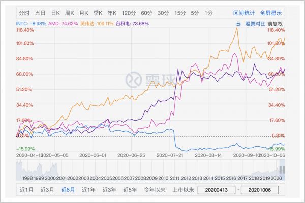 在高度博弈的市场,有人落后,就有人领先。英特尔备受质疑,股价陷入低迷,市值在2200亿美元徘徊。但自7月以来,昔日小弟英伟达、台积电、AMD等股价则纷纷赶超。