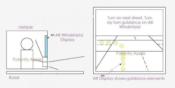 苹果汽车 AR 挡风玻璃概念图|Patently Apple