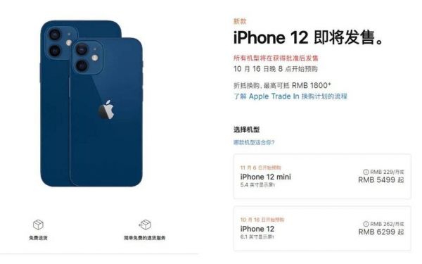 目前,苹果中国官网价格已经出现了更新,苹果iPhone 12起售价为6299元,iPhone 12 Mini起售价为5499元,iPhone 12 Pro起售价为8499元,iPhone 12 Pro Max起售价为9299元。