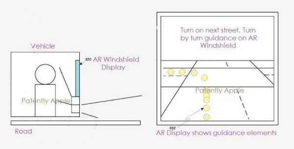 苹果汽车 AR 挡风玻璃概念图|Patently Apple