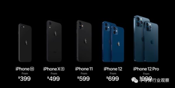 价格方面:iPhone 12 mini 699 美元(5499 元)起,起步容量 64G;iPhone 12799 美元(6299 元)起,起步容量 64G;Pro 999 美元(8499 元)起步,起步容量为 128G;Pro Max 1099 美元(9299 元)起步,起步容量为 128G。