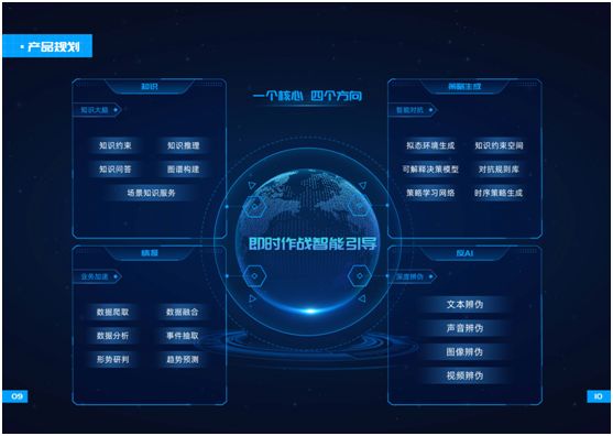 4个方向,指的是知识、情报、策略生成、反AI等4条产品开发路线。针对不同的场景需求,来开发不同形态的产品载体,以广泛运用于多个维度。